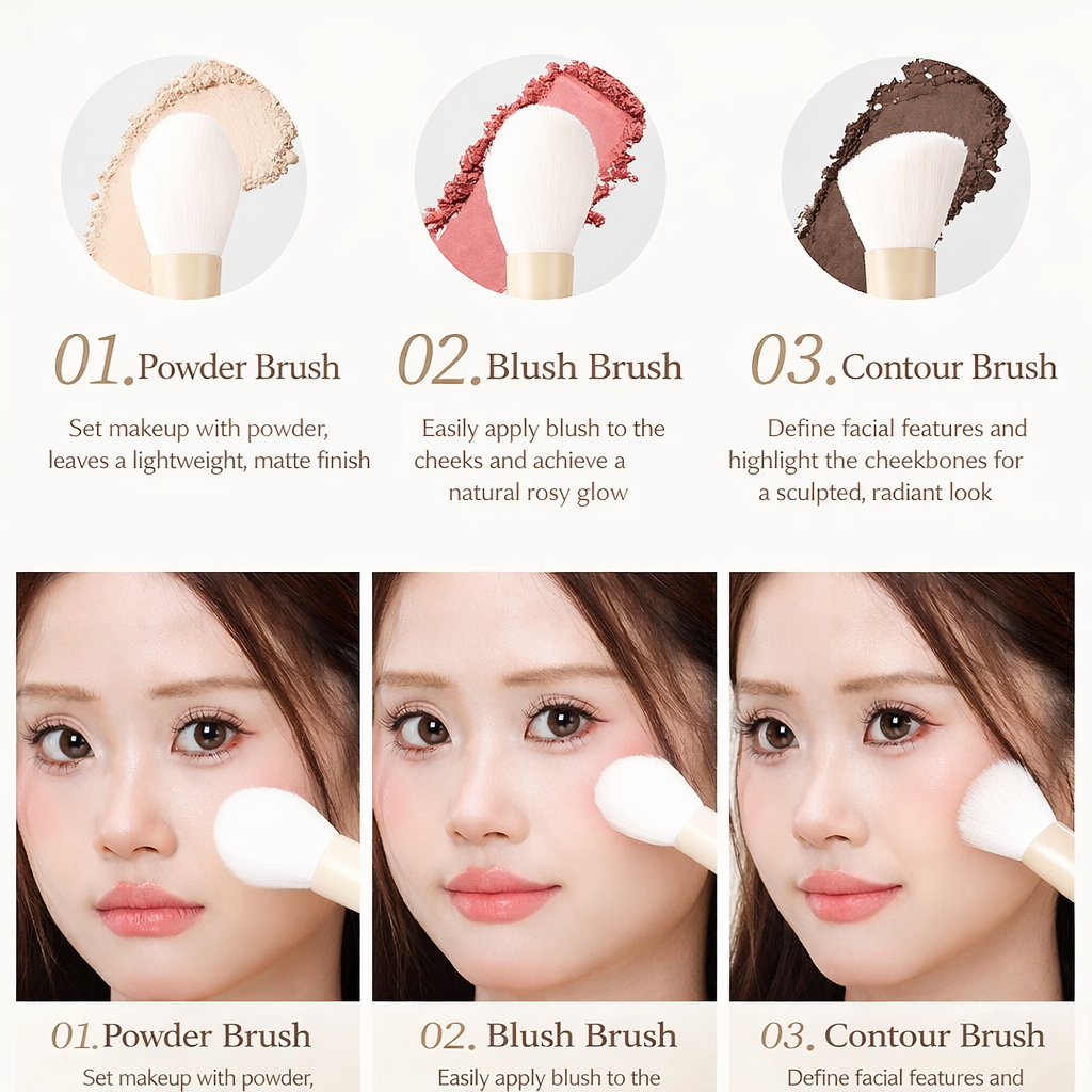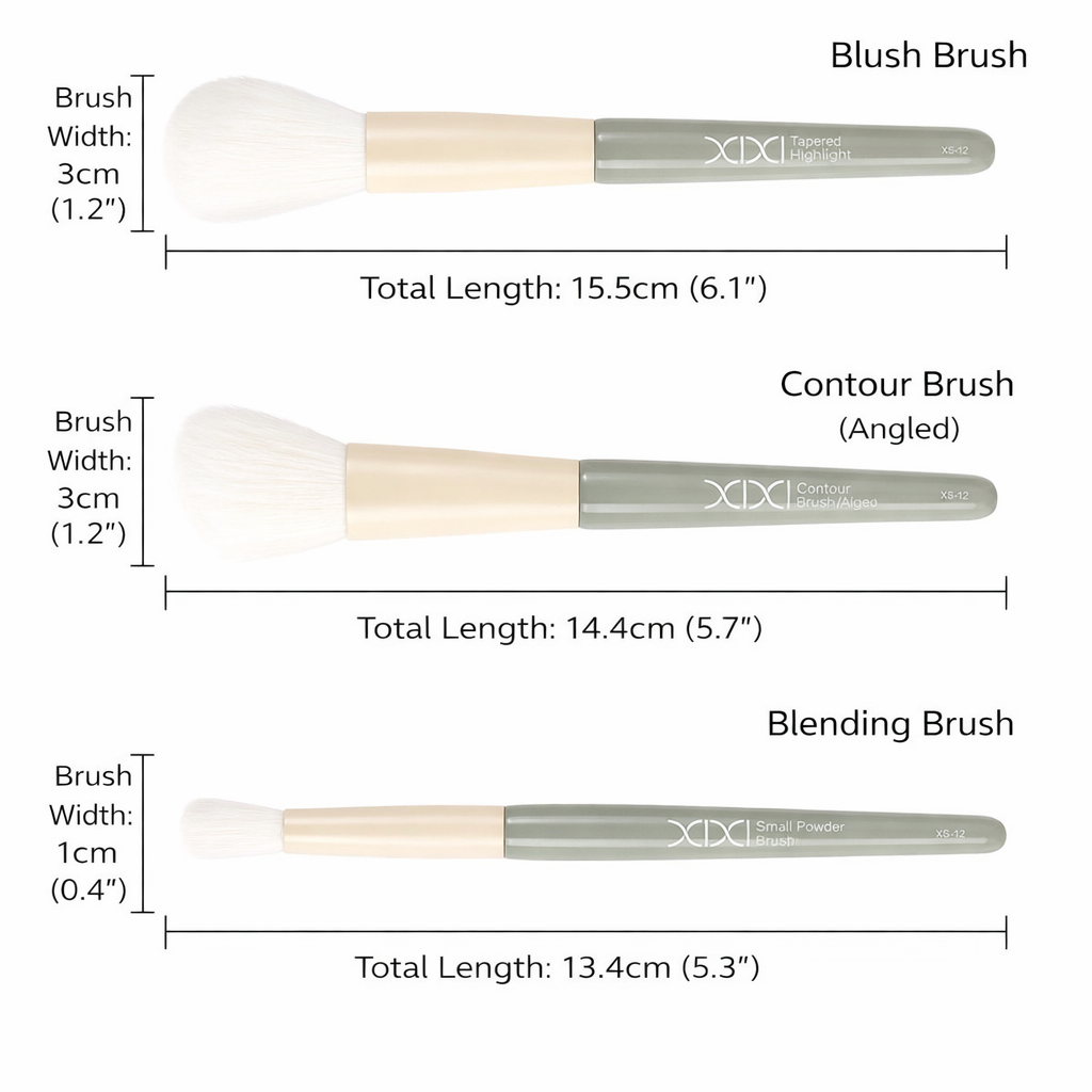 XIXI Makeup Brush Set طقم فرش مكياج ناعمة بتصميم أنيق، يوزّع المكياج بسهولة وبشكل متساوٍ لنتيجة طبيعية واحترافية. مناسب للباودر،البلاشر، الكونتور وظلال العيون.