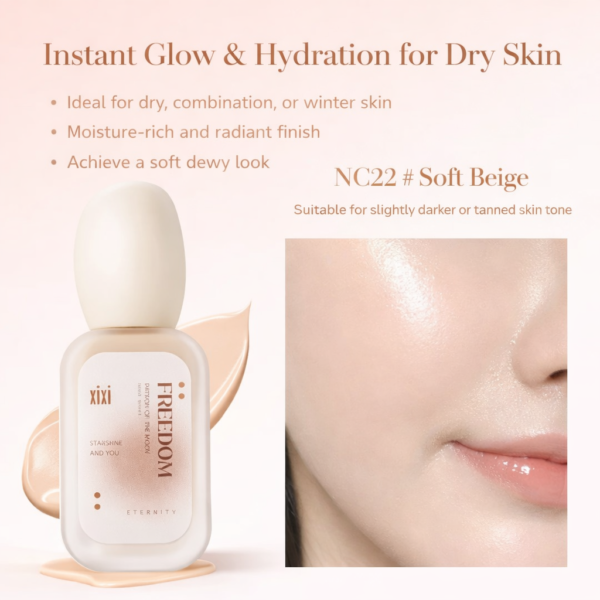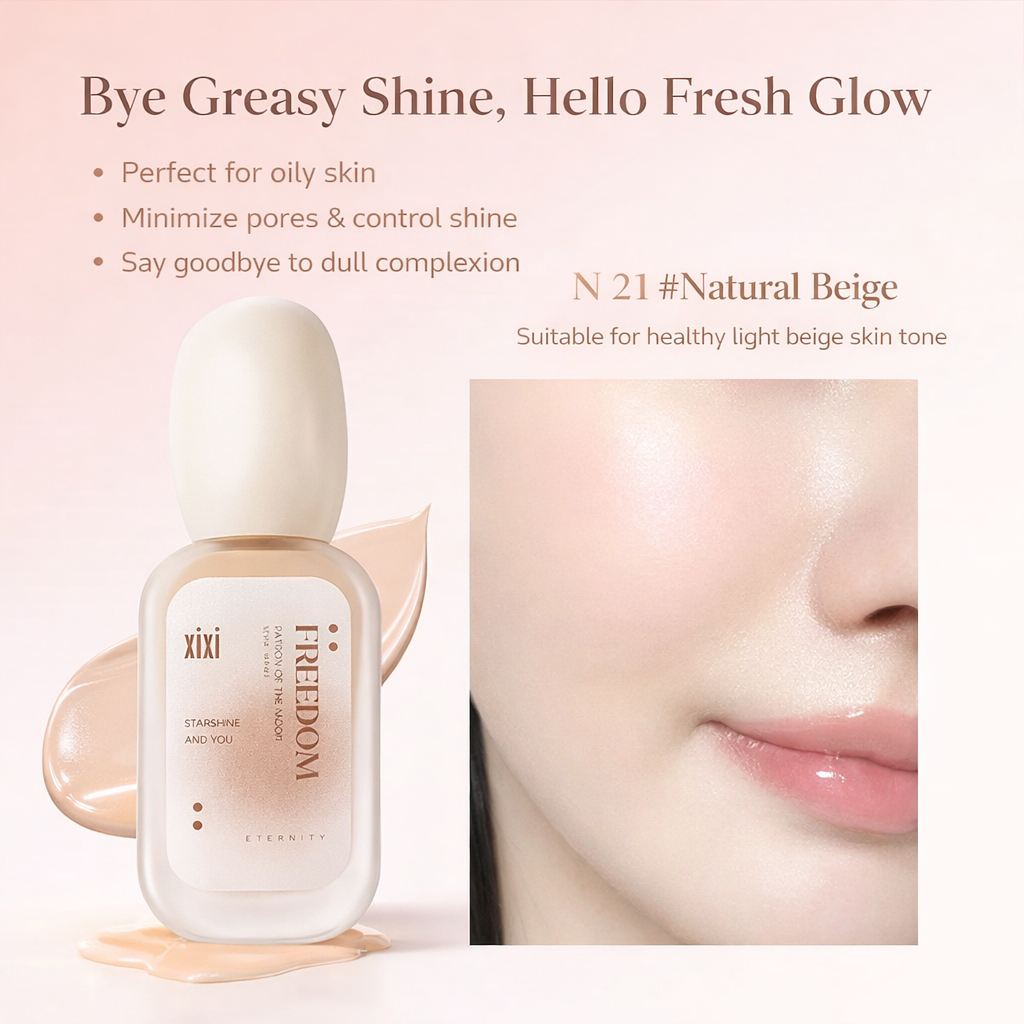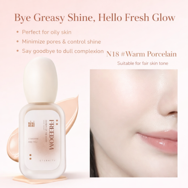 فاونديشن XIXI Freedom بتركيبة سائلة خفيفة تمنح البشرة مظهرًا طبيعيًا ناعمًا مع لمسة إشراقة صحية. يندمج بسهولة مع البشرة دون تكتل أو خطوط، ويساعد على توحيد اللون وإخفاء العيوب بشكل متوازن. مناسب للاستخدام اليومي ولمختلف أنواع البشرة