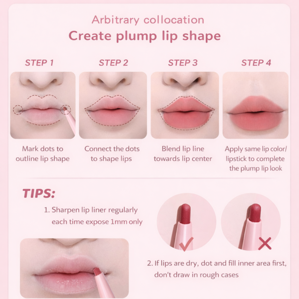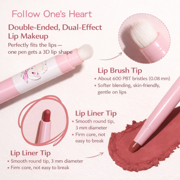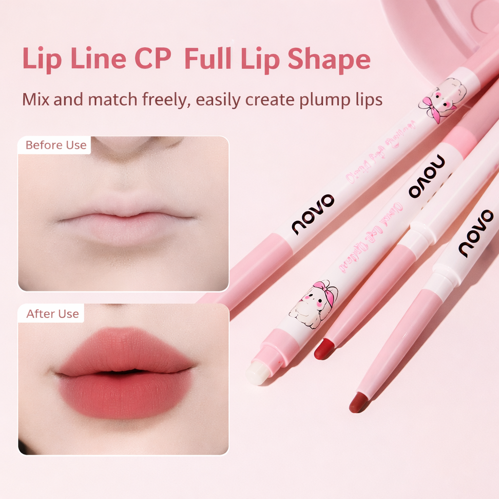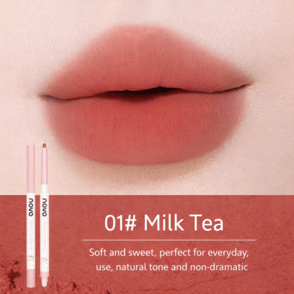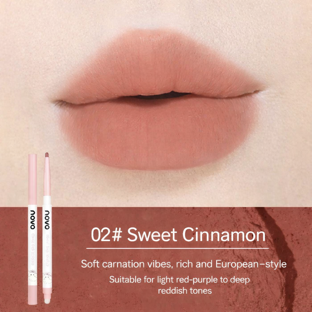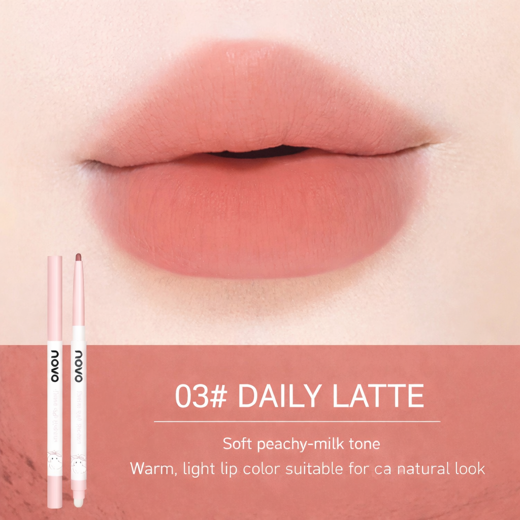 قلم تحديد شفاه مزدوج من NOVO بفرشاة دمج ناعمة وطرف تحديد دقيق، يساعد على رسم الشفاه بسهولة ودمج اللون بسلاسة للحصول على مظهر ممتلئ وطبيعي