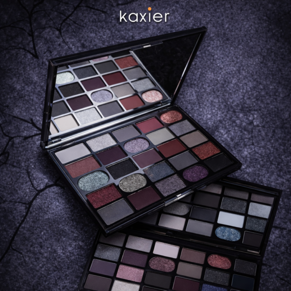 لوحة ظلال kaxier ألوانها غامقة وسموكي حلوة، تدمج بسهولة وتعطيك لوك قوي ومرتب بدون تعب. تنفع للسهرات وللي يحبون الستايل الجريء